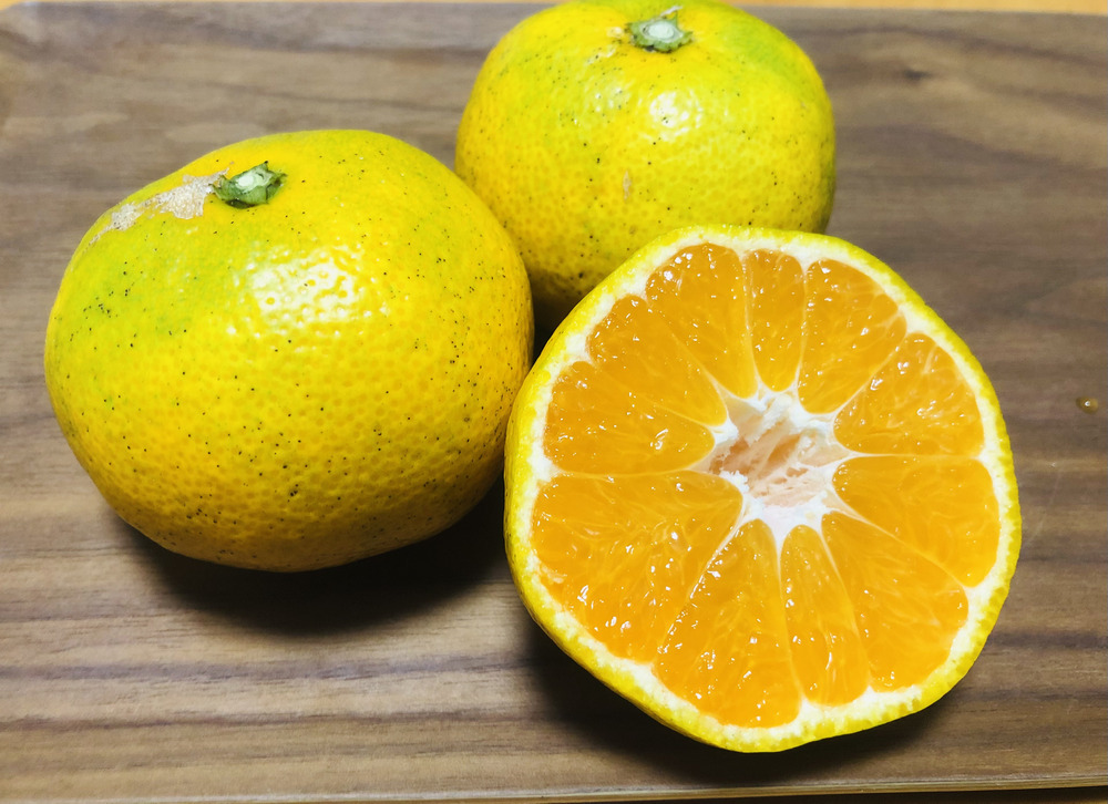 今年の早生みかんは、極早生みかんに比べかなり外観は改善しており、甘さと酸味のバランスがとれた味の濃いみかんになりました。