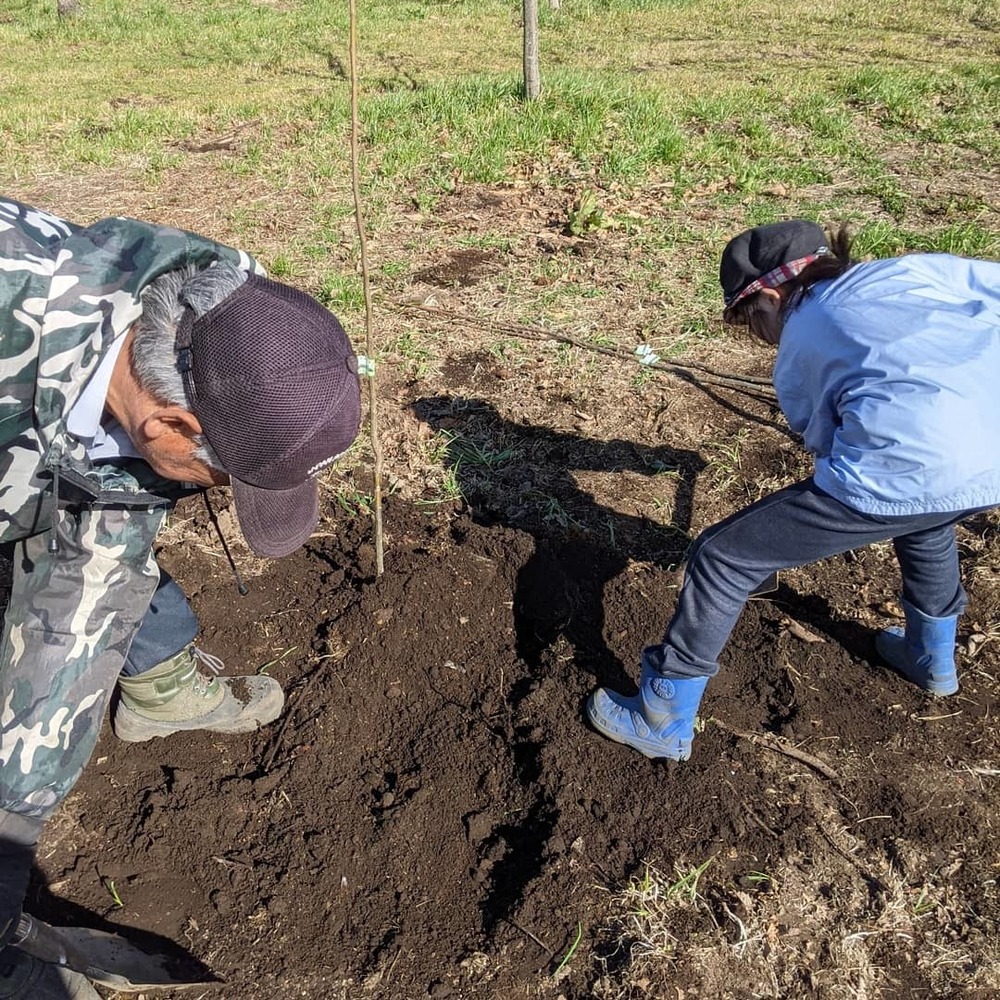 シーズンオフの農園では、剪定作業&片付けも終わり、数種類の新しい栗苗を植えました。