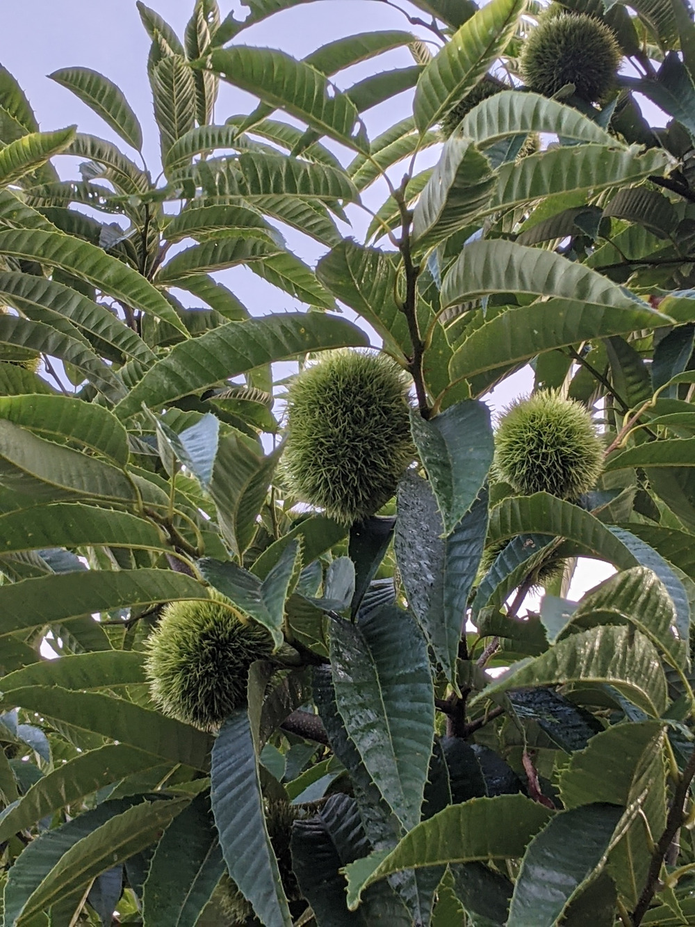 早生の栗イガはぐんぐん大きくなって握りこぶし程度の大きさになってきました。