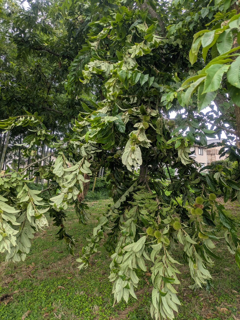 たくさん毬栗のついた枝には負担かかるのでしょうね。