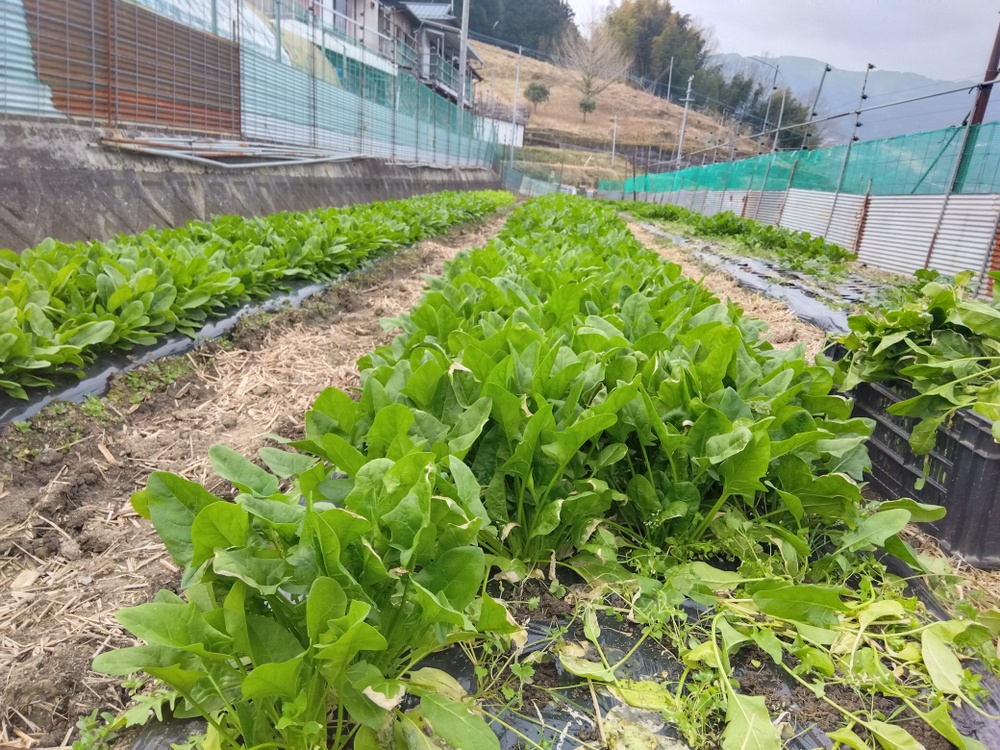 3月の陽気でほうれん草の成長に収穫が間に合いません。