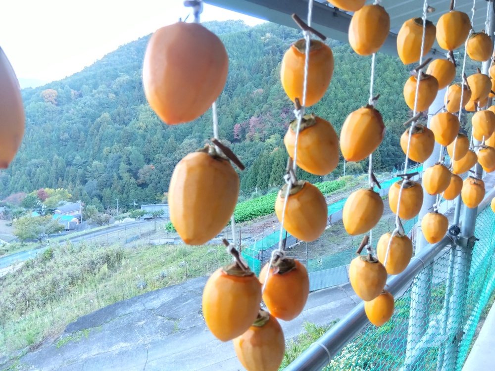 ほぼ自然栽培の柿を収穫し、皮むき・天日乾燥で約1か月