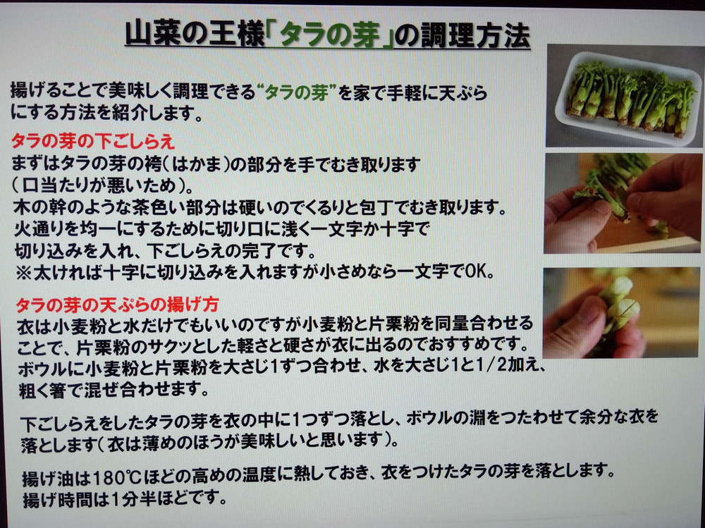 タラの芽下処理方法と【タラの芽天ぷらのレシピ付き】でお届け致します。
