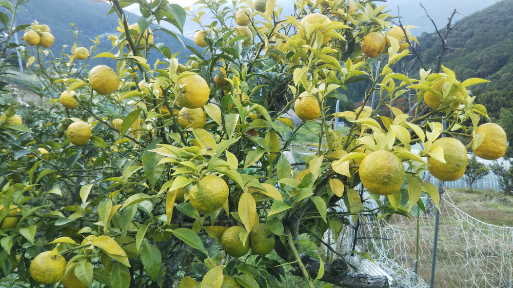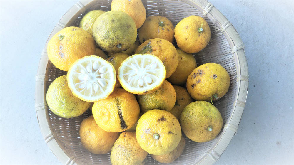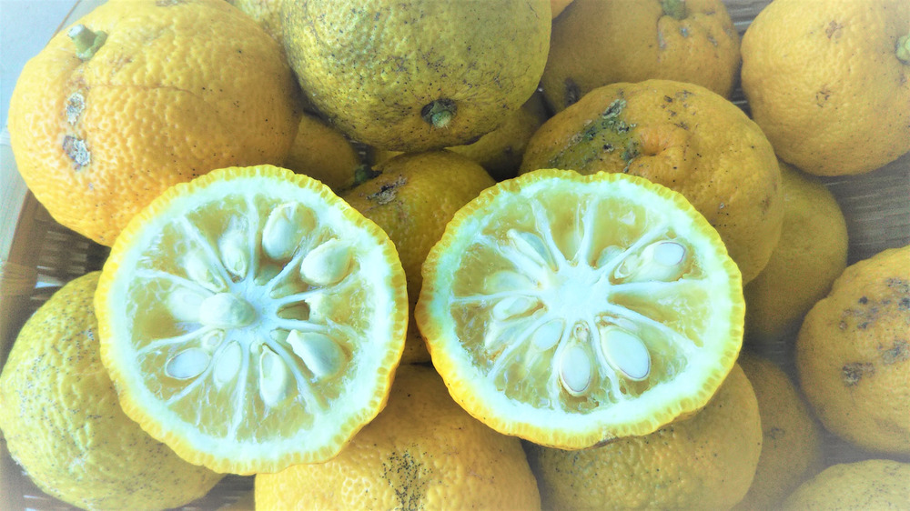 ゆず酢の加工用、秋の味覚の柚子ですが農薬不使用のため外観が