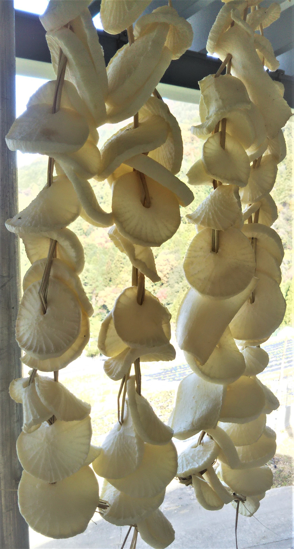 輪切りにした大根を藁に通して軒下で寒風に晒して仕上げます。