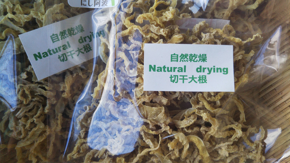 寒空の下でタップリと太陽の陽ざしを浴びた自然乾燥の切干大根