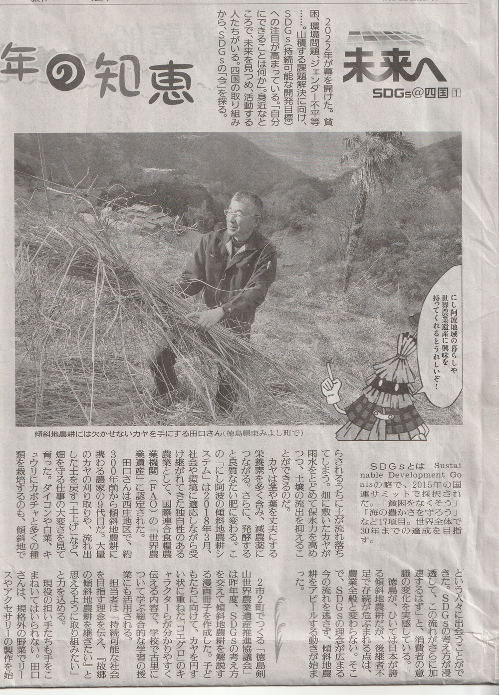 添付の写真は本年1月1日付けの読売新聞(四国版)に掲載された記事です。