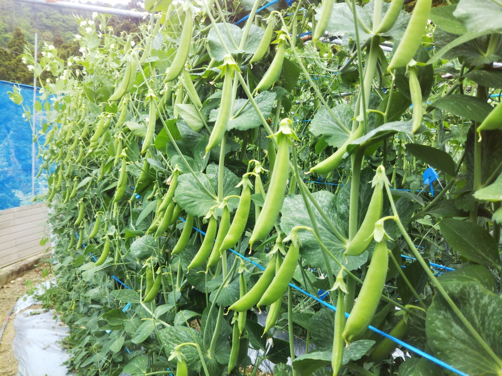 (写真向かって左側:絹さやエンドウ、右側がスナップエンドウです)