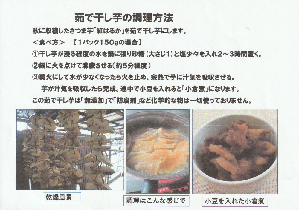 加工手順は最近一般に販売されている「干し芋」とは異なります。