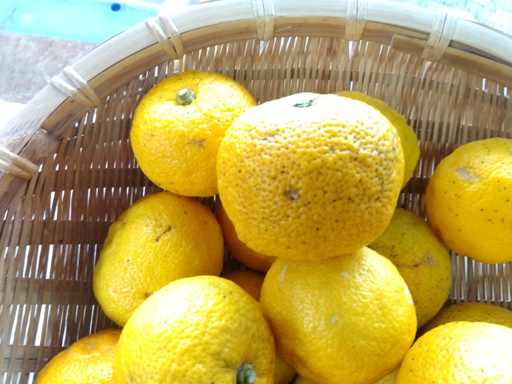 柚子は果汁も酸っぱくて鍋料理には欠かせませんが、皮も料理に使ったり、お風呂に入れて柚子湯を楽しむため、農薬を使用せずに自然栽培で育てております。
