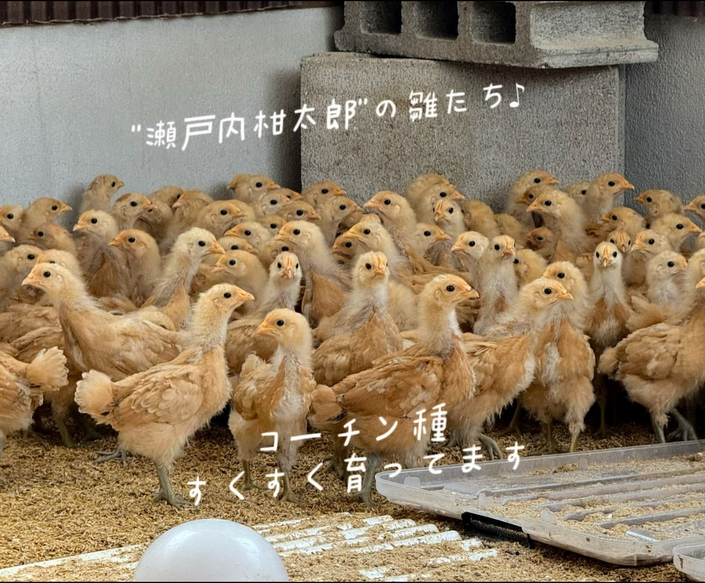 コーチン種の"瀬戸内柑太郎"の雛がすくすく育ってます!