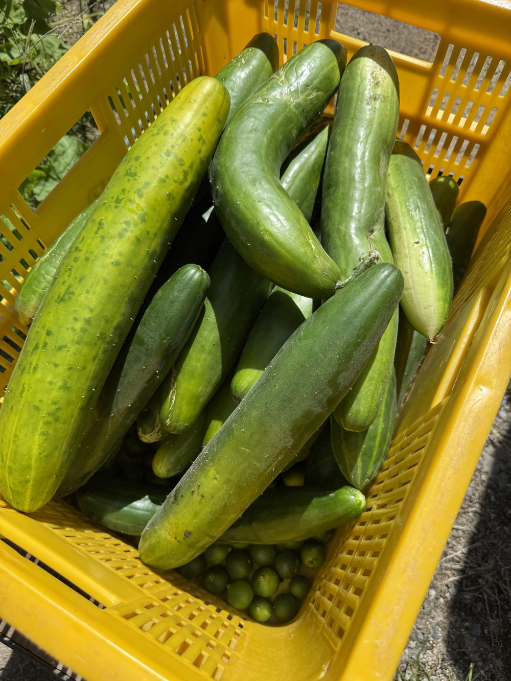 最後に菜園のお化けキュウリ(鷺みかん代表のペット ミニブタちゃん用♪)もいただきこの日は終了🌞