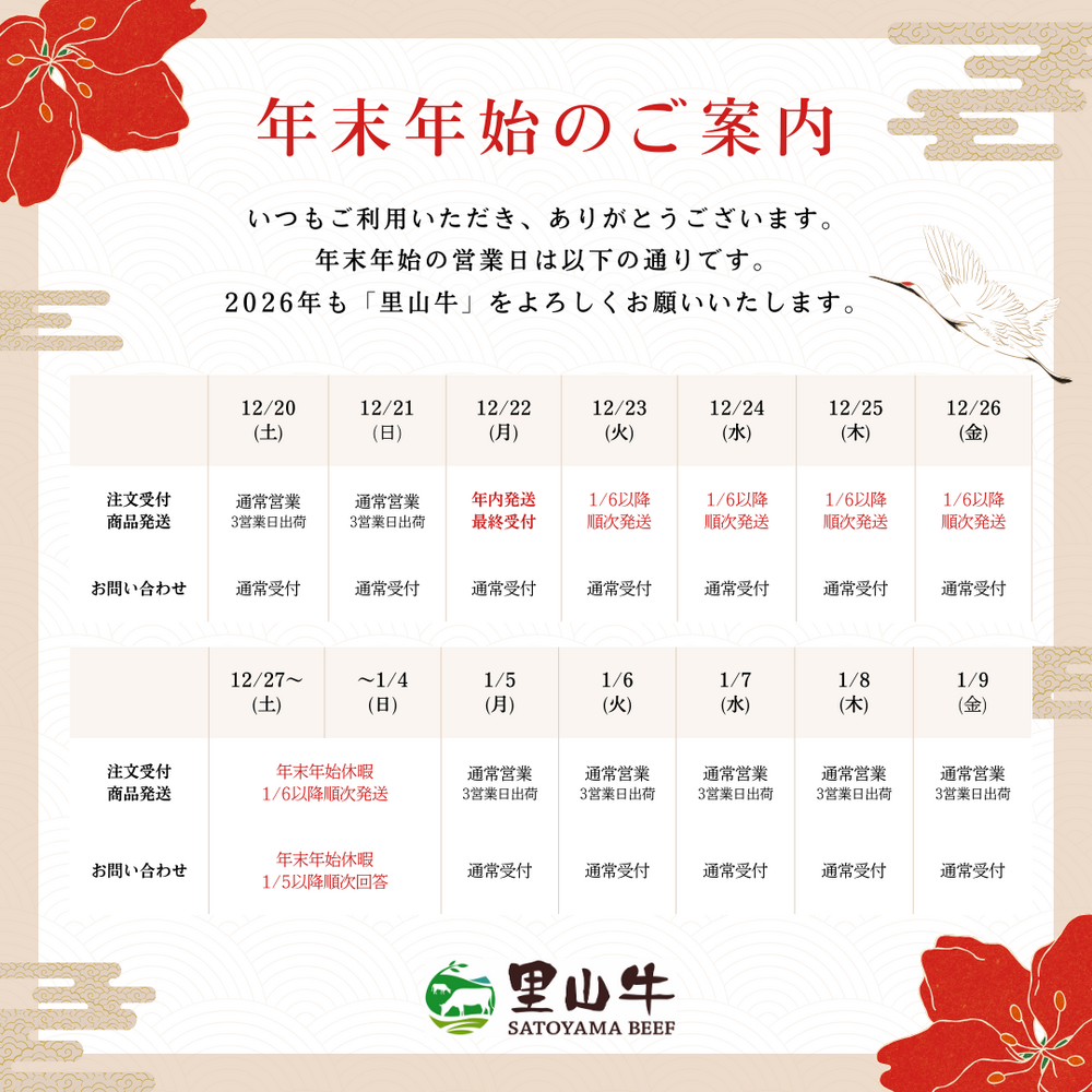 ・出荷お休み期間 :12/26(金) ~ 1/4(日)