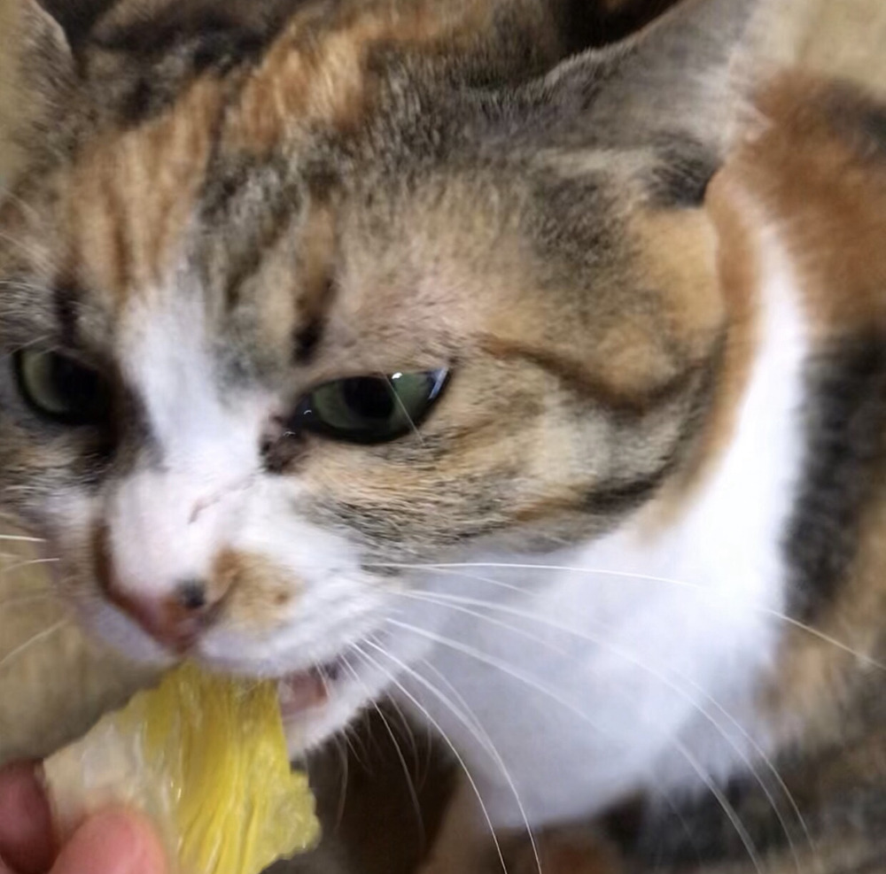 夕食の温野菜のオレンジ白菜を少量あげてみました!