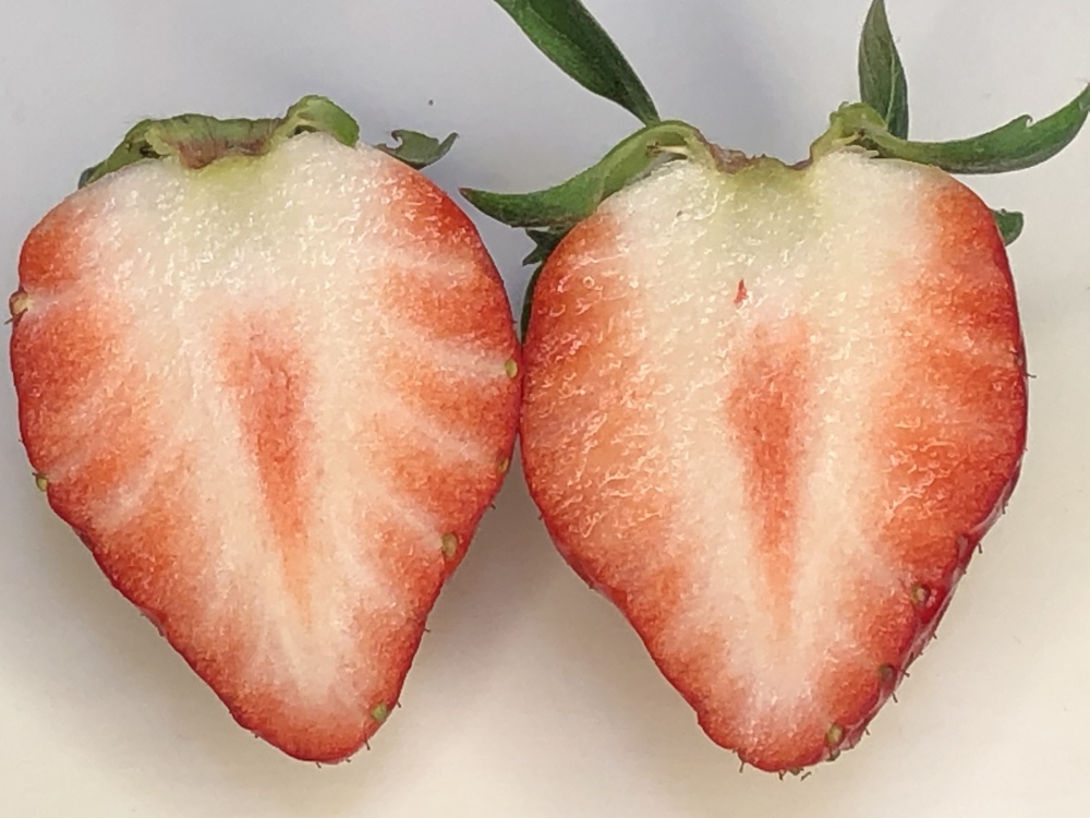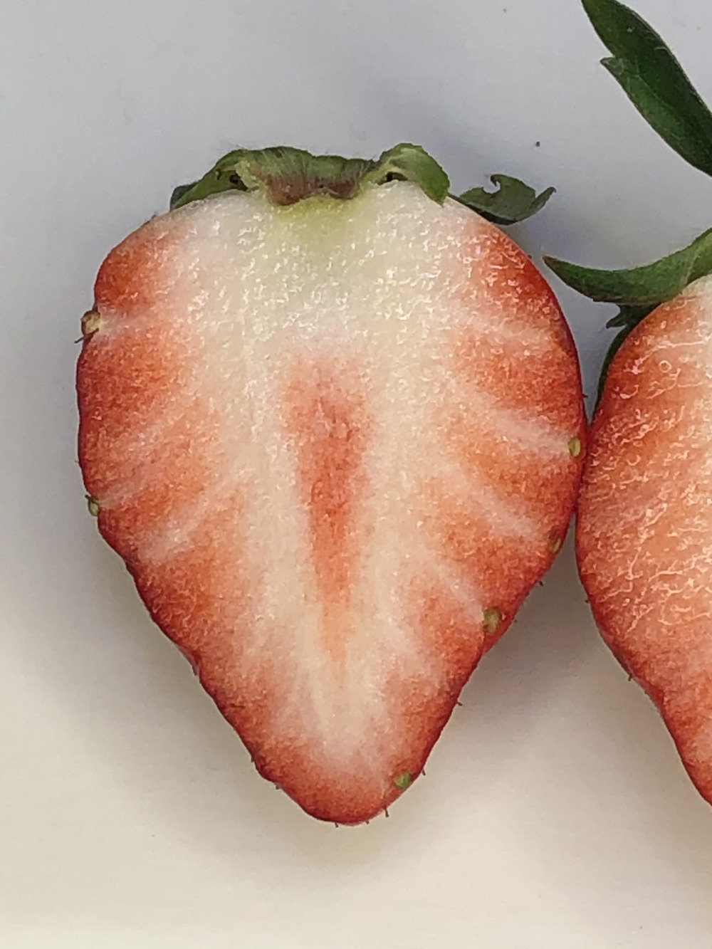 いちごの実(通称はタネ)から道管が中心に伸びているのが判るかと思います