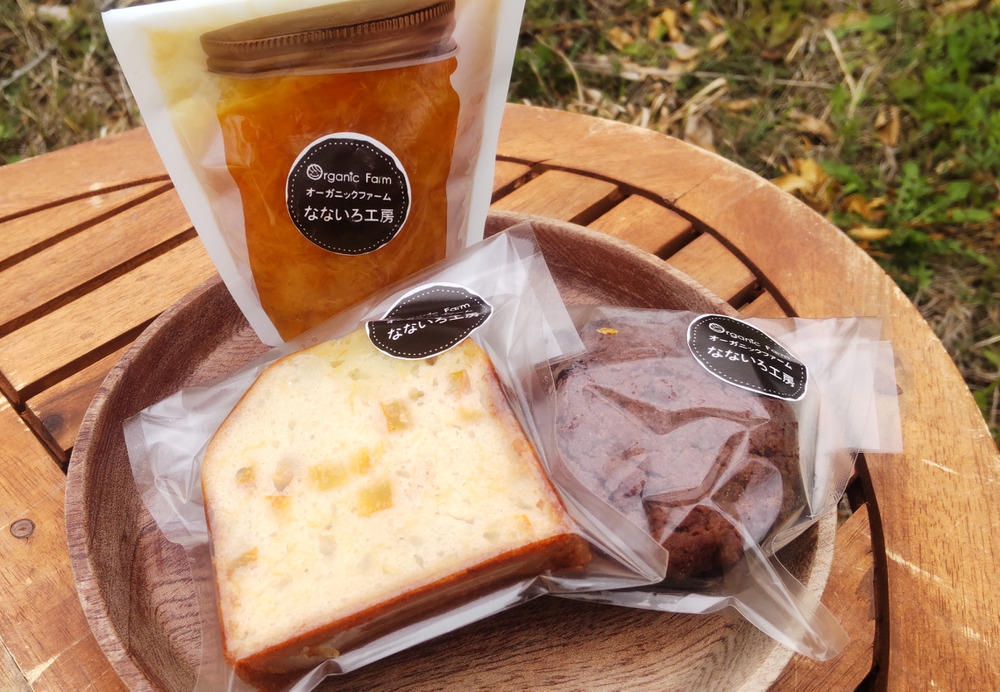 なないろ工房の農園で育てた自然栽培甘夏を使用したパウンドケーキ、米粉ブラウニー、マーマレードの甘夏づくしのスイーツセットできました!