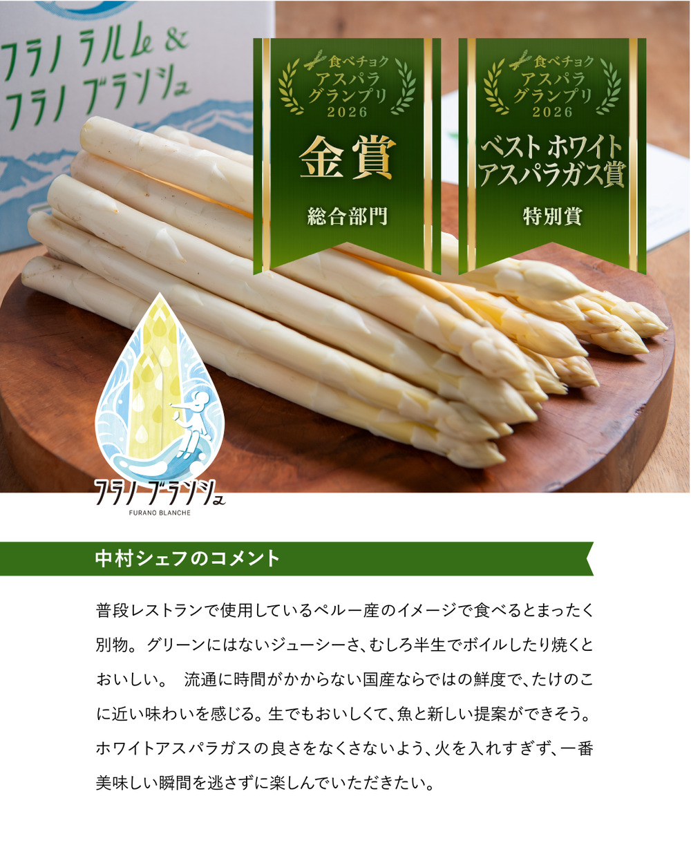 🏅ホワイトアスパラガス『フラノブランシュ』:総合部門 金賞 / ベストホワイトアスパラガス賞