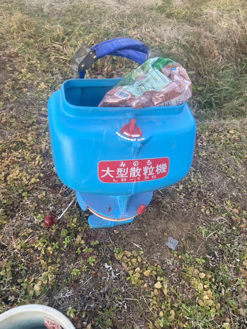 堆肥散布して冬緑肥と夏緑肥同時散布