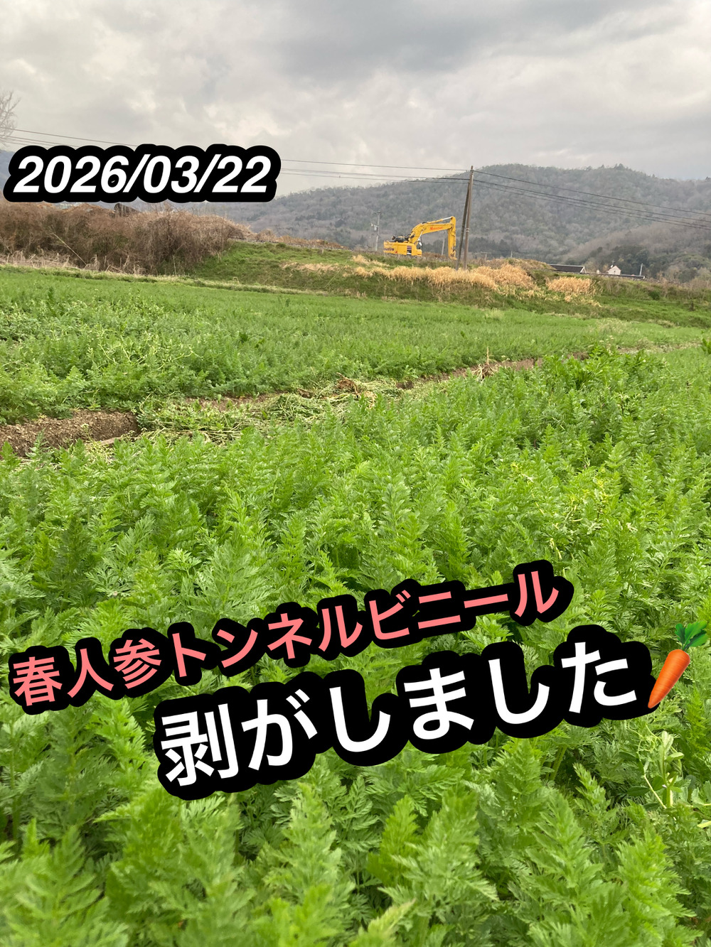 2026/3/22 春人参トンネルビニール剥ぎました!