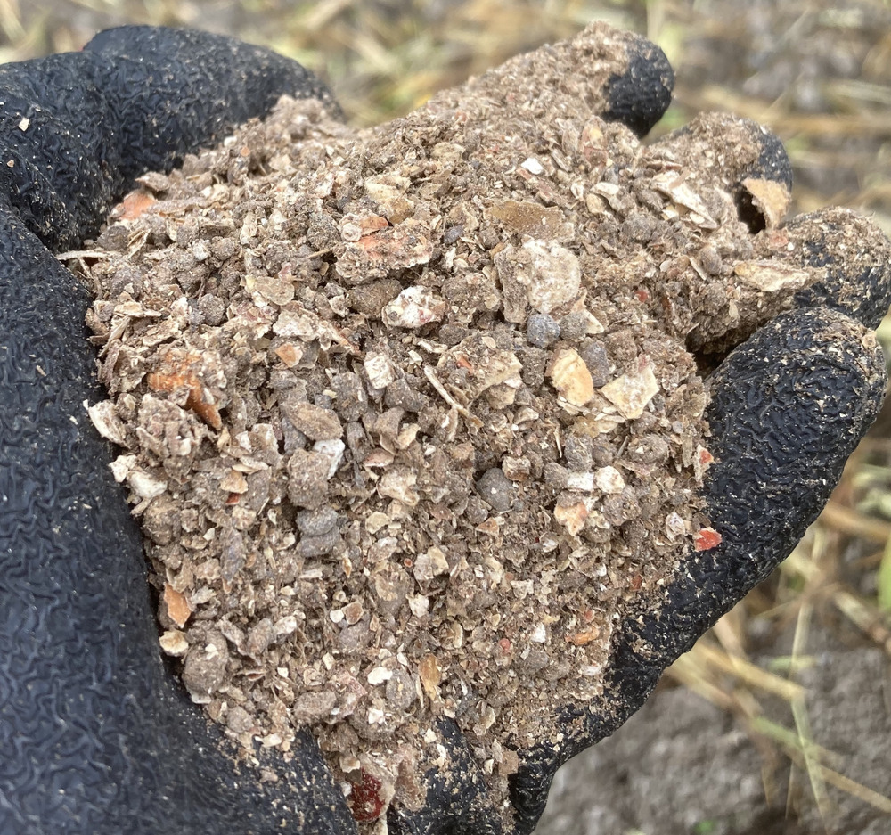 この牛糞堆肥は籾殻と牛糞が主原料です。さらさら〜としてます🎶
