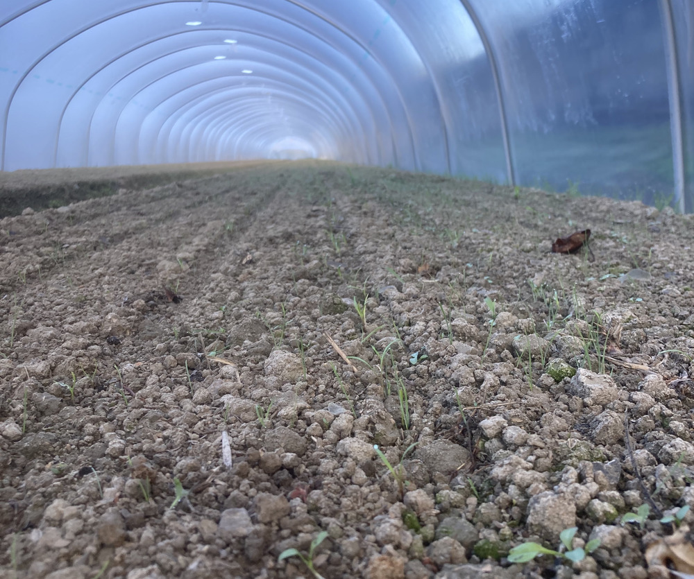 人参種まきから10日後、ぽつぽつと人参の芽が出てきました!