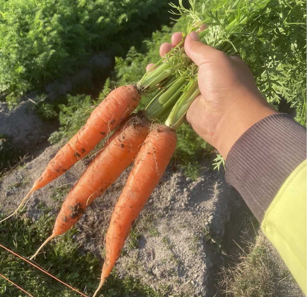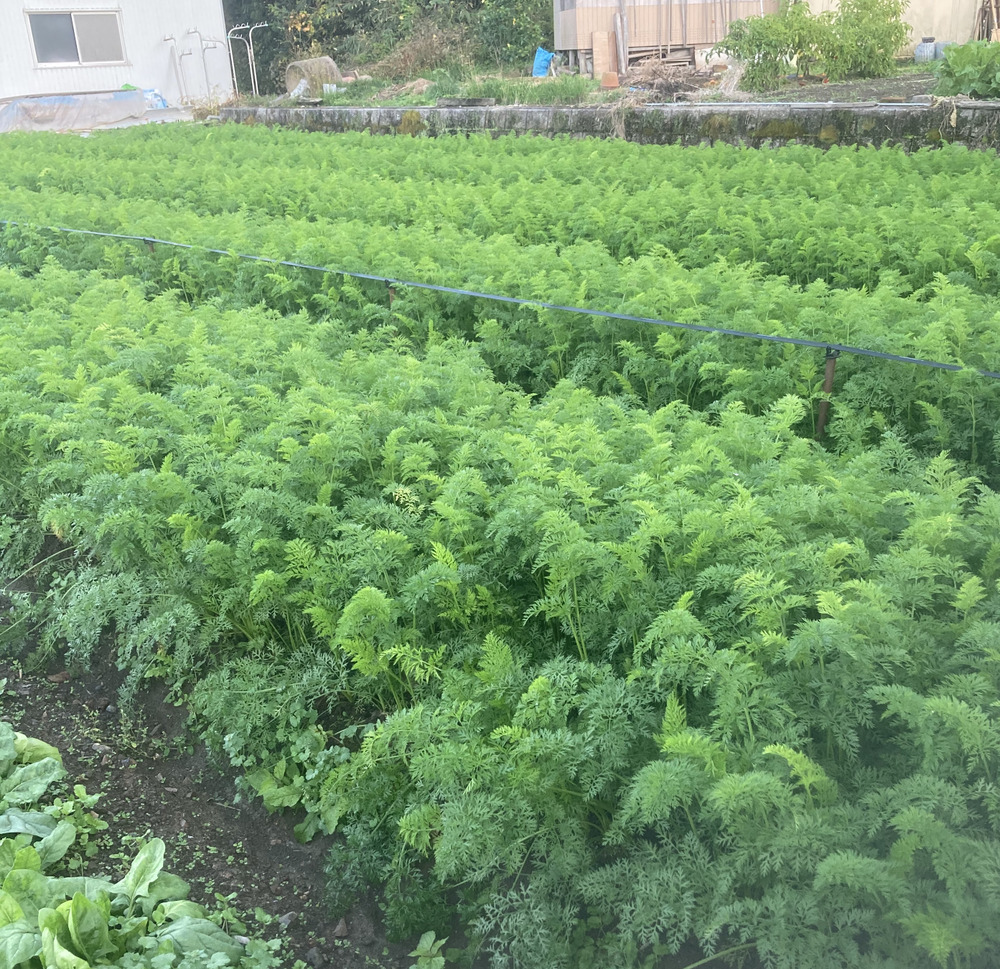 試し掘りした人参の葉っぱを、父が飼っているヤギにあげました🐐🎶