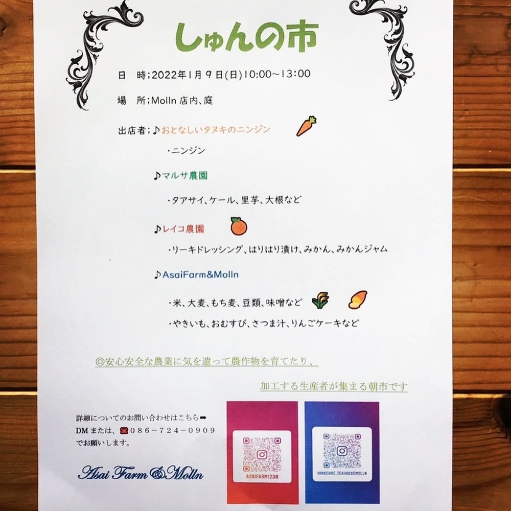 @kimagure_teahousemolln さんが主催される朝市に出店させて頂きます🥕
