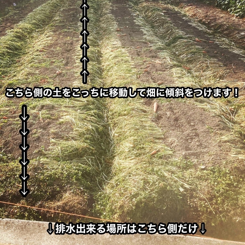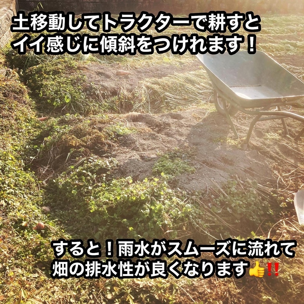 土を運んだ後に耕すと勝手に傾斜が付き排水性が上がります💪‼️