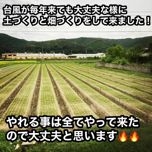 たとえ、台風が直撃しても大丈夫な様に排水性が良い土づくりと、スムーズに排水出来る様な畑づくりをして来ました!