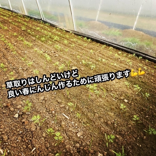 冬にんじんの収穫をしつつ春にんじんの草取りも同時並行でしています🌱