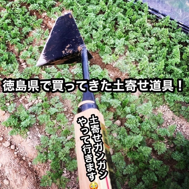 去年は少し春にんじんの土寄せが甘かったので今年はしっかり土を掛けてあげます😳