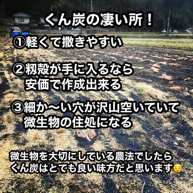 土作りも収穫と同時にしていて、くん炭を撒きました!