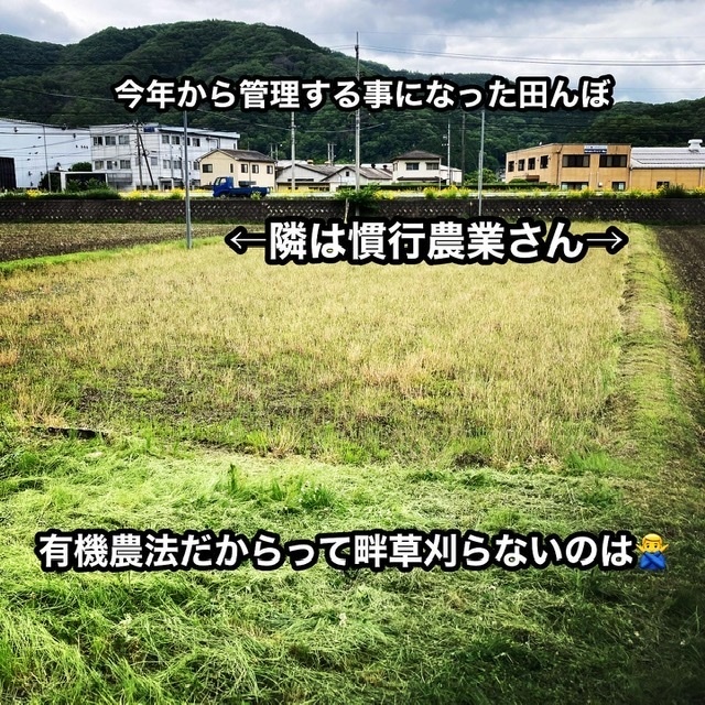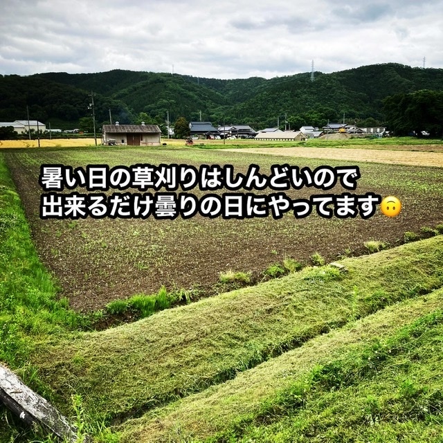 有機農法だからって畔などを草ボーボーにしてたら通りにくいし、雑草の種が落ちて迷惑をかけるので綺麗にしてます👌🎶