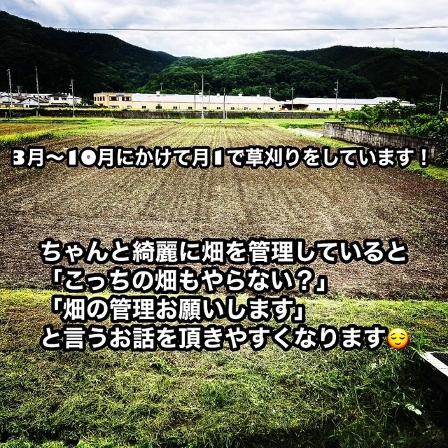 新規就農の場合どうしても日頃の作業が忙しくて草刈りが後手後手となりますが、良くも悪くも草刈りをちゃんとしとけば畑を紹介して貰えるチャンスが増えます。