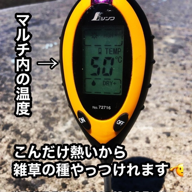 雑草の発芽する深さがそれぞれ違うので、いかに地中深くまで熱く出来るかがポイントとなります。