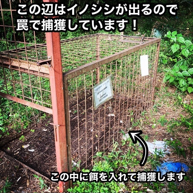 そのため近くに罠を設置してイノシシを捕獲してます!