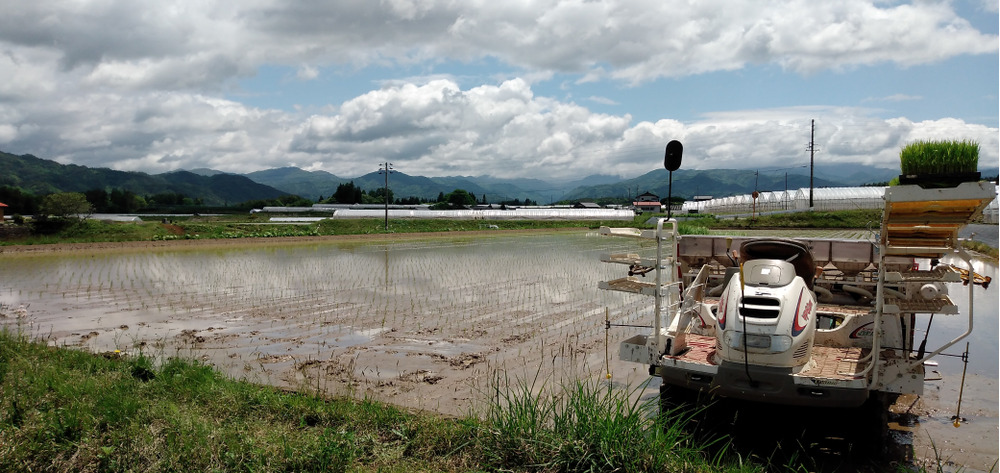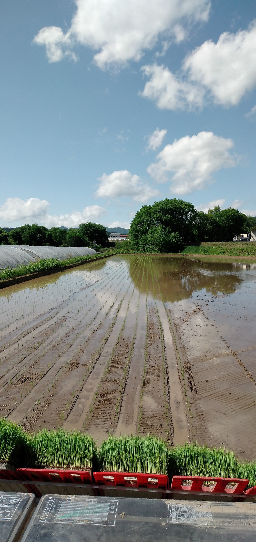 今日は田植え二日目昨日とは打って変わて風はありますがいい天気!