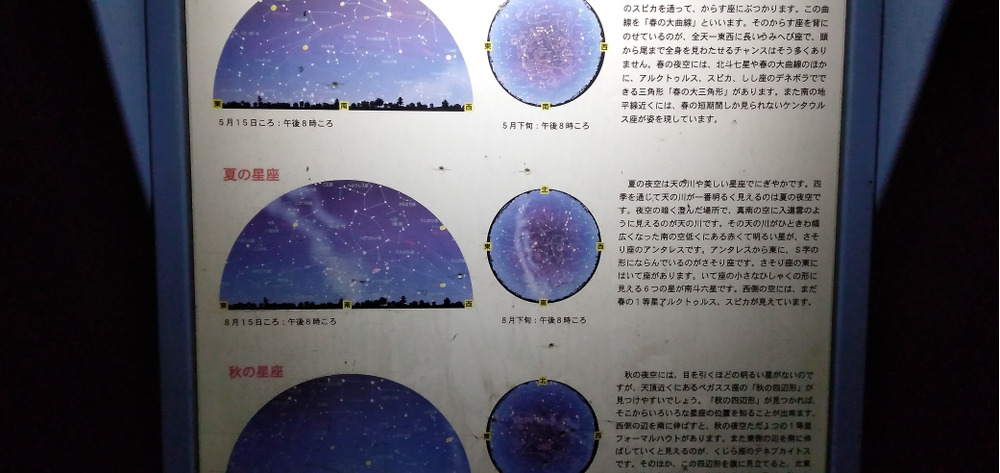 今現在、気温は20℃涼しく軽トラックで走っているとスヤ~て感じです。田んぼの水見の帰り、ものすご~く広いトマト,ほうれん草畑の中にある飛騨エアーパークの小さな公園のベンチで、カ、がブウ~ン,手でパチーンとしながら星空を見てます。夏は一番天の川🌌が見えて北斗七星もよく見えると書いてありました。新婚旅行先のオーストラリアで天の川がこれでもか~と言うくらいハッキリ見え忘れられません。飛騨高山の天の川もうっすらですが見えてなかなか綺麗です(^^)