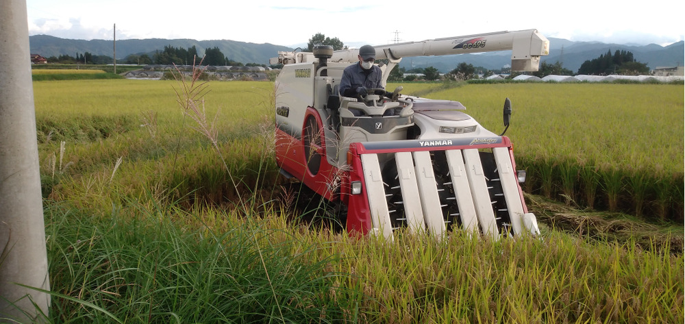 さー今日17時から、稲刈り。するどー!今年は飛騨牛母ちゃんの藁集めに専念するため!知り合いの稲作農家に稲刈りをたのみました。六条刈りのコンバイン、あ、…と言うまに30aの田んぼの稲刈り1時間で終了ー