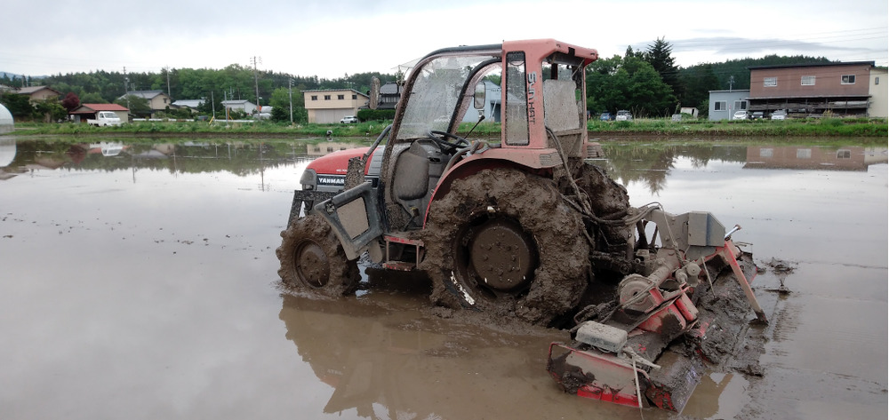 飛騨高山朝から雨で、警報が出ていましたが代かき終わりました、トラクターの後ろにドライブハローと言うハシゴの長い用なロータリーで田んぼの土を平らにして明日から田植えの始まり始まり! #龍の瞳契約農場 #飛騨う米 #有機肥料100パーセント #特別栽培米 #飛騨牛 #循環農業