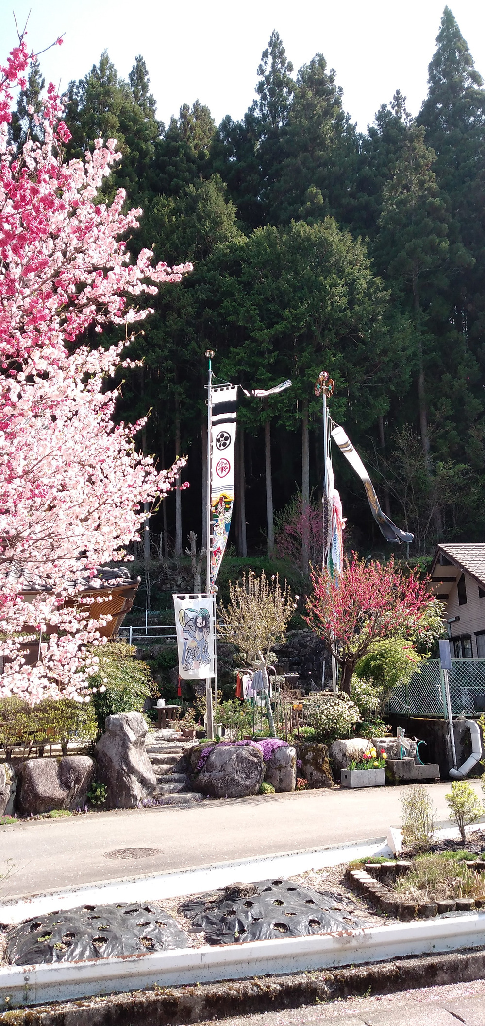 下呂市で見つけた名前はわからない赤と白の花、2本の木だろうなーと近づいて見た。根元から見たが一本の木でした一本から2色の花咲くんですやね驚いた😱よく見たら奥には男子誕生を祝う鯉のぼり㊗️飛騨地方は今頃から6月5日くらいまで上げ下げします!紅白の花と鯉のぼりなんだか縁起がいいな~大変だけど頑張ってー懐かしや~💪