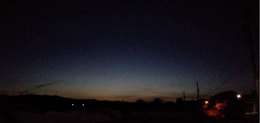 今日は雲一つ無い快晴だったからか夜の西空がやけに青い、現在4℃飛騨山脈おろしの風が冷たい又明日朝は0℃か!百笑スタイルほっかぶりで仕事!温けー