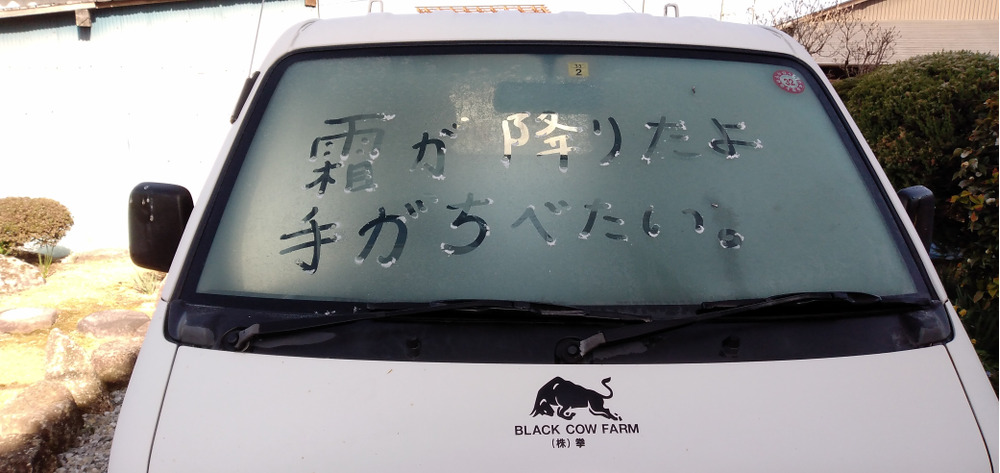 今朝軽トラックでゴミすて行こうとしたら(写真)だからいつまでたってもあかぎれ!治らない😂