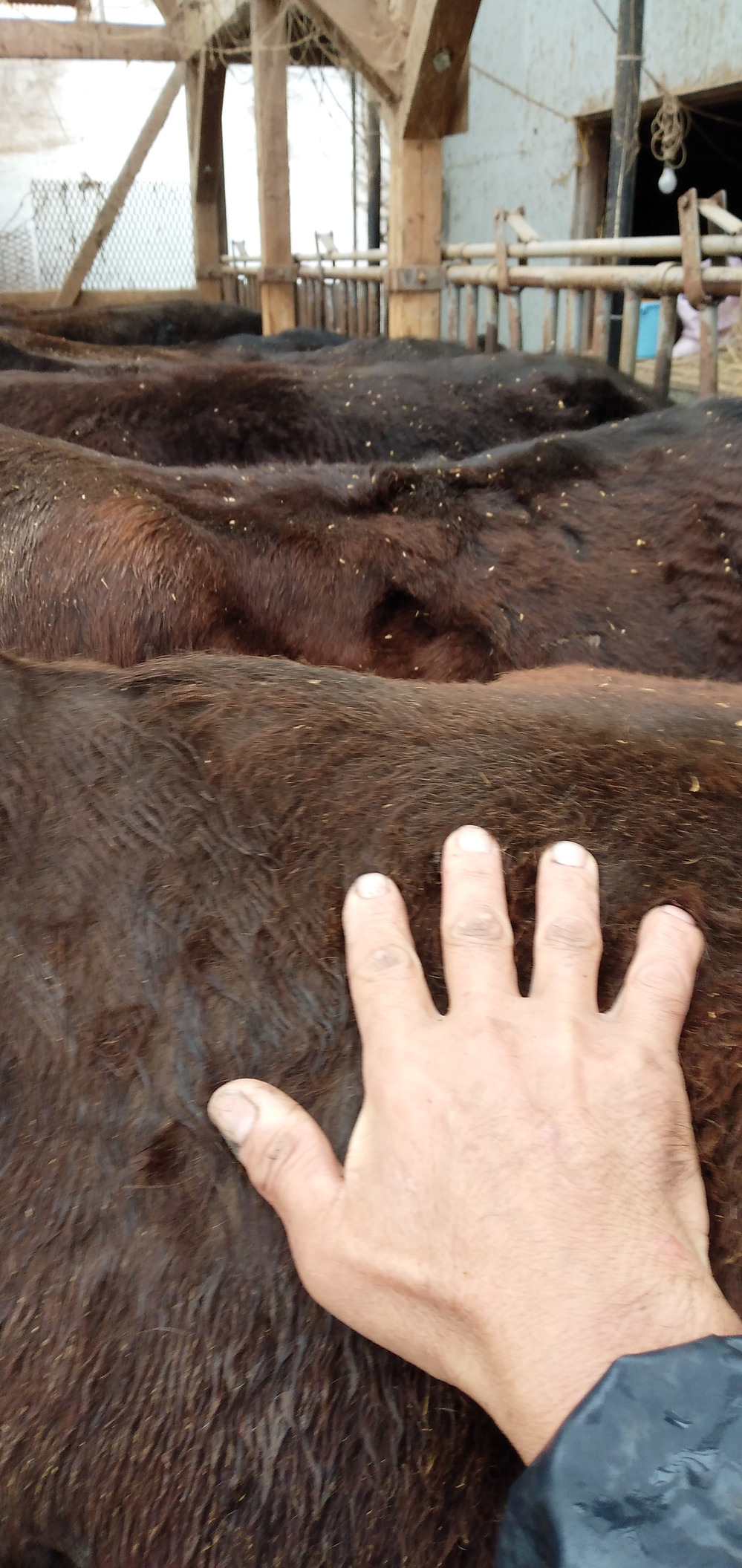 昨日の朝から雨でなんだかやけに寒い。乗鞍岳は雪だろうなーと思いながら仕事してました、実際海抜1000mくらいは雪が降っているとFB仲間から連絡あり。余りに手が冷たいから牛さんをハグ!ついでにお尻に触って!温け~平均体温38.5℃牛さんがモー、セクハラですやめてくれださいと一声!