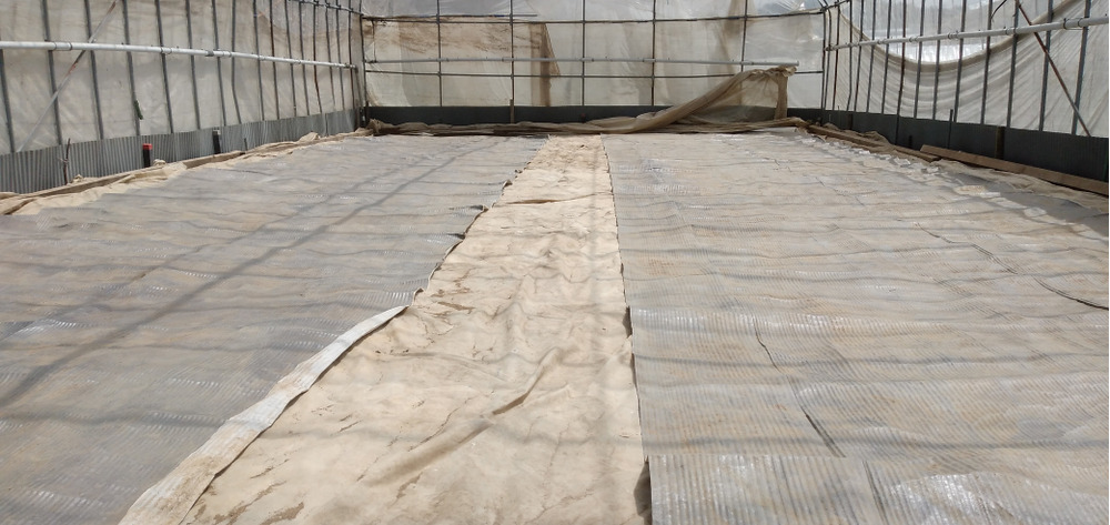 今日はハウスの中にビニールを引いてプールの準備と炭が入ったGPシートを引きました。それから約30℃のお湯で芽出した籾種を真水に入れて芽止をしました。