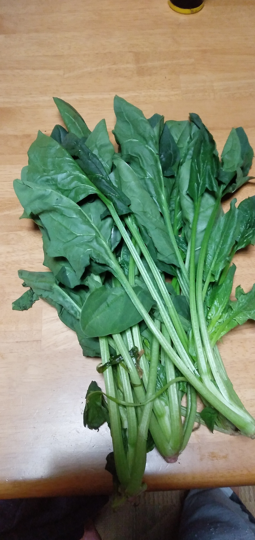 飛騨高山の高冷地野菜の一つにハウスホウレンソウがありますが最初に出荷されるのが雪割りホウレンソウと言われるもので去年の11月に種をまき雪の下にして春収穫します。冬の寒さから身を守るため糖分を蓄えるため美味しいです。しかし大きい!😁