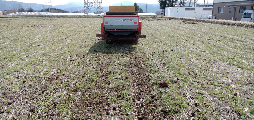 今日ですべての田んぼの堆肥まきが終了しました、明日からケイ酸を撒きます