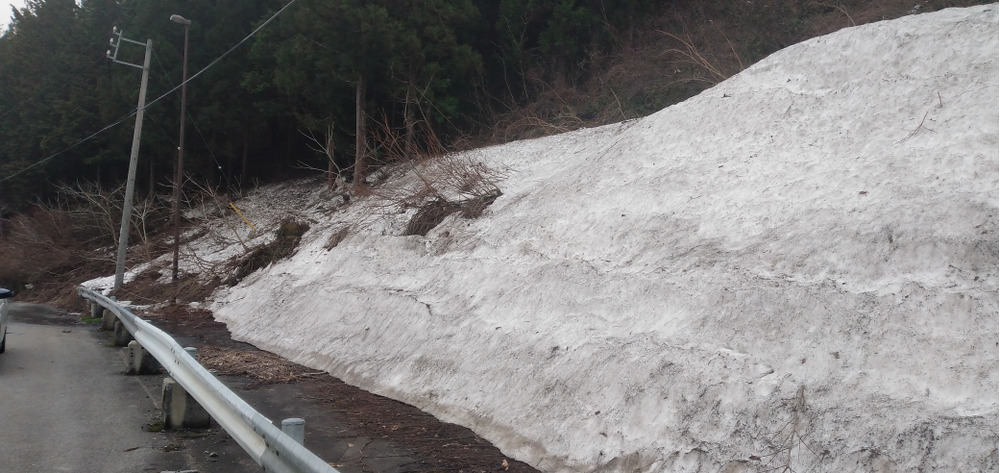 白い物が!山裾は日当たりが少なく日陰が多いせいもあり雪の壁が残っていました😅。この分だと5月の連休くらいまではある雪の量です!