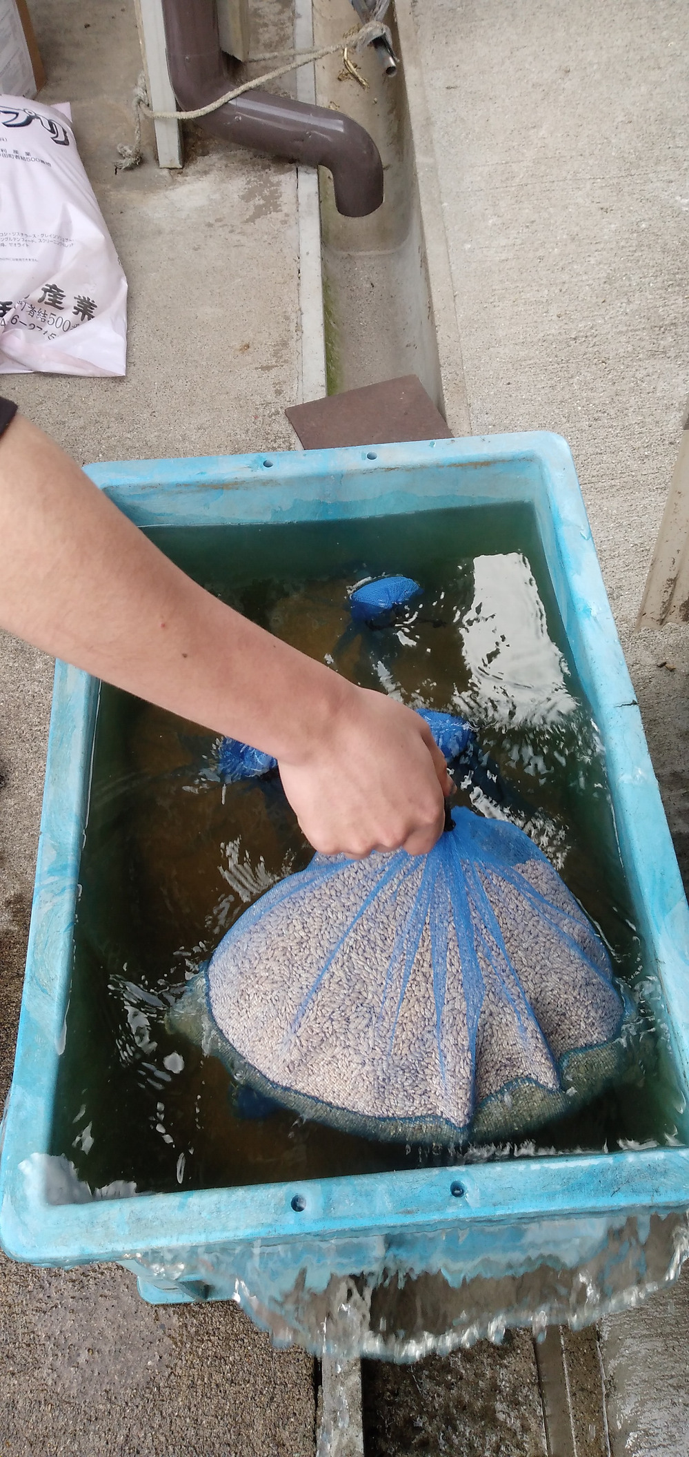 今日は種もみの消毒をしました、無消毒なので温湯消毒をします。種もみを60℃のお湯に10分つけて真水につけて温湯消毒終了。このまま1週間水につけて芽出しをしまーす😁