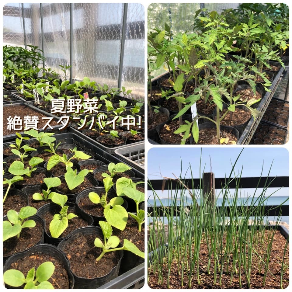 夏野菜の苗たちも、ぬくぬくの種苗ハウスの中で、畑デビューを待ちわびています♪